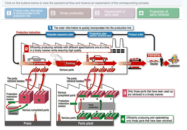 - On the Toyota Global website John Gore found an Illustration of the Toyota Production System that works as a road map to more detailed information, like the diagram in the Nissan book.