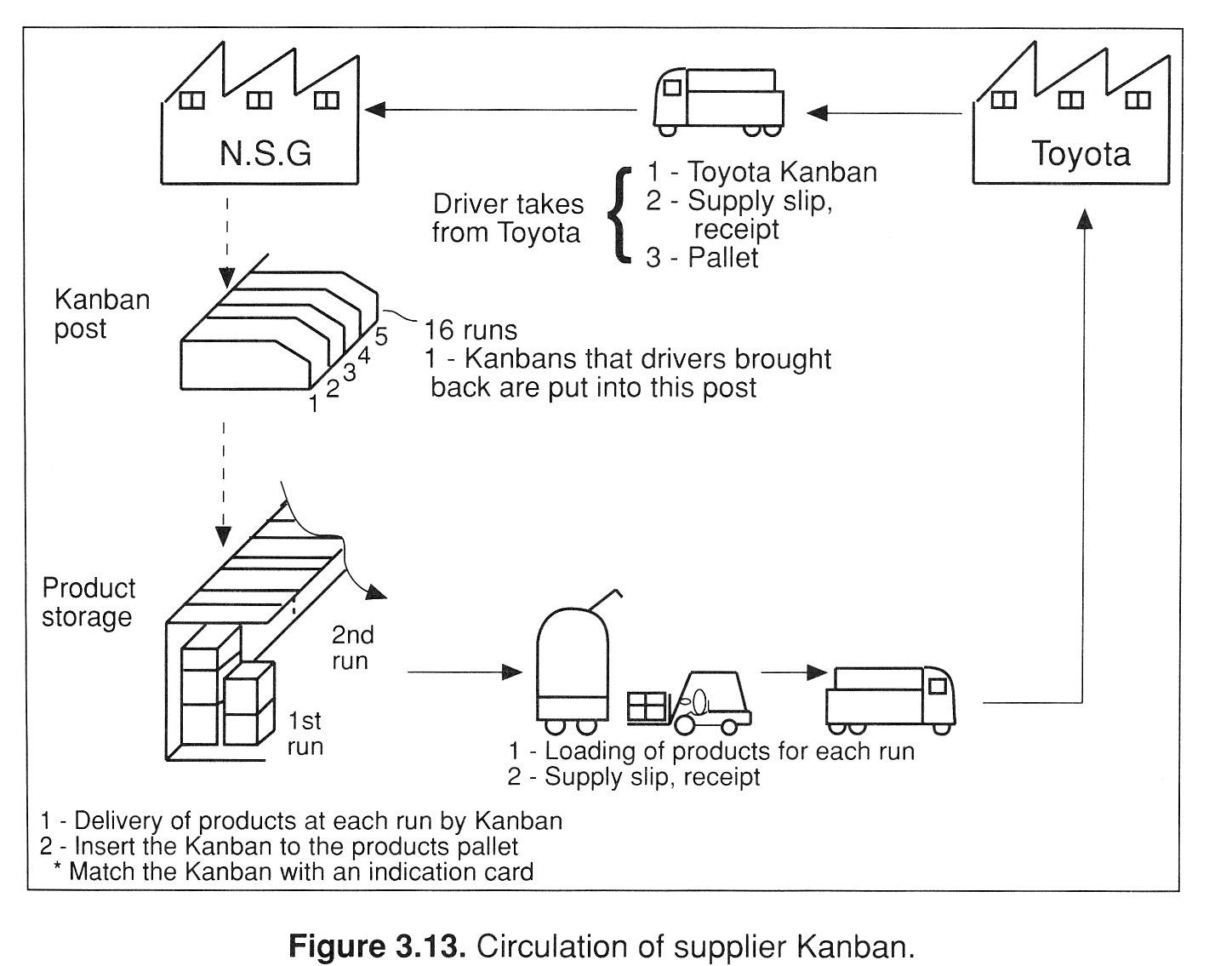 - In Monden’s 1993 “Toyota Production System” book, there is a diagram on p. 59 about the circulation of supplier kanbans with symbols that resemble the VSM’s.