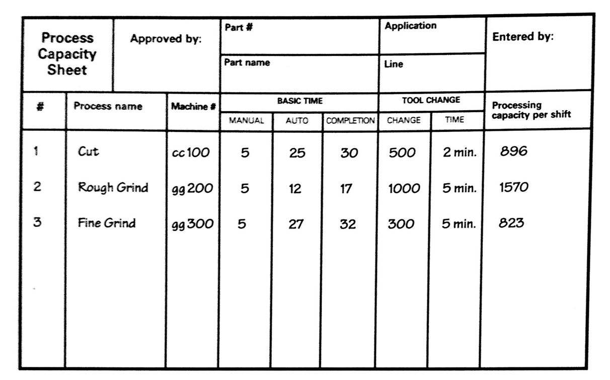 And the resulting documentation is not Standard Work. Standard Work, in the Toyota lexicon, is about takt time, work sequence, and required WIP, it doesn’t include process capability or even work instructions at the individual station level. It is only about the way you combine them in a line or a cell.