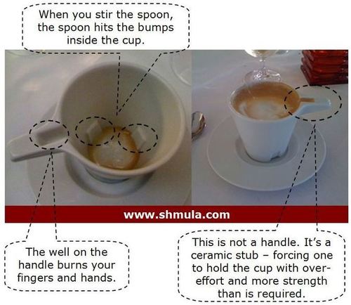 A properly designed handle is self-explanatory in that any user who has never seen a cup will immediately understand what it is for. But it doesn’t make the cup mistake-proof: there is nothing physically preventing you from pouring coffee onto it while it is upside down.
