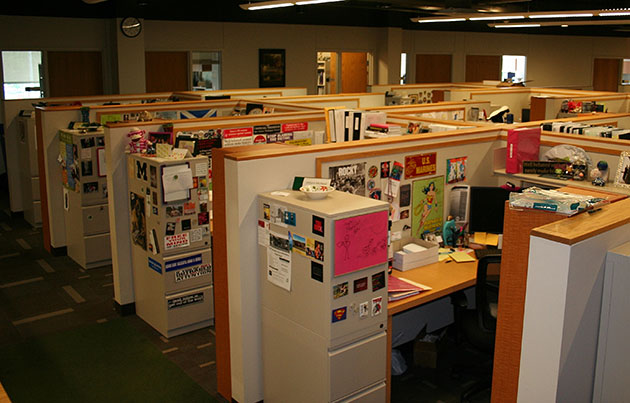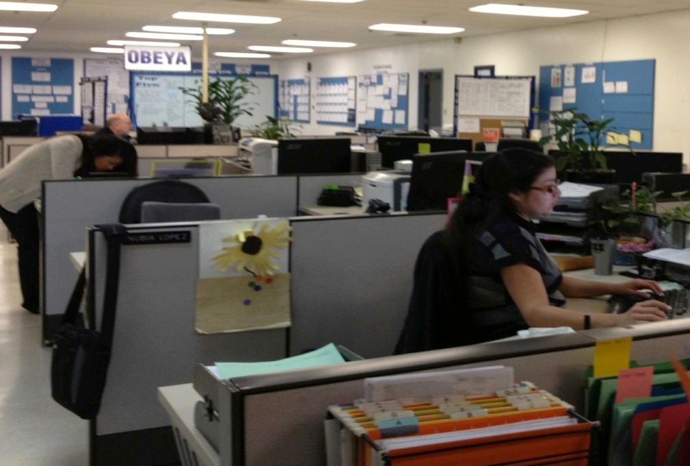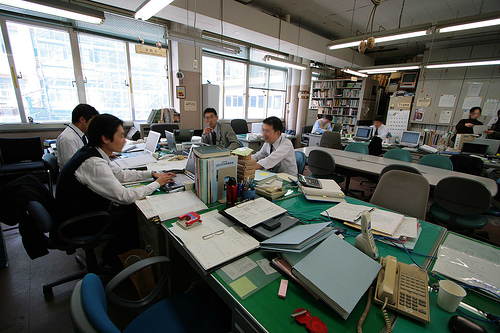 Not every big room where multiple people work is an obeya. For perspective, it is worth comparing obeyas with common office layouts. When not on the road, I now work in a room full of books and computer equipment that is my private office. Before, I have worked in cubicle bullpens in the US, and at a gray metal desk in a row with no partitions in Japan, structures that are respectively standard in each country, regardless of the nature of the work.