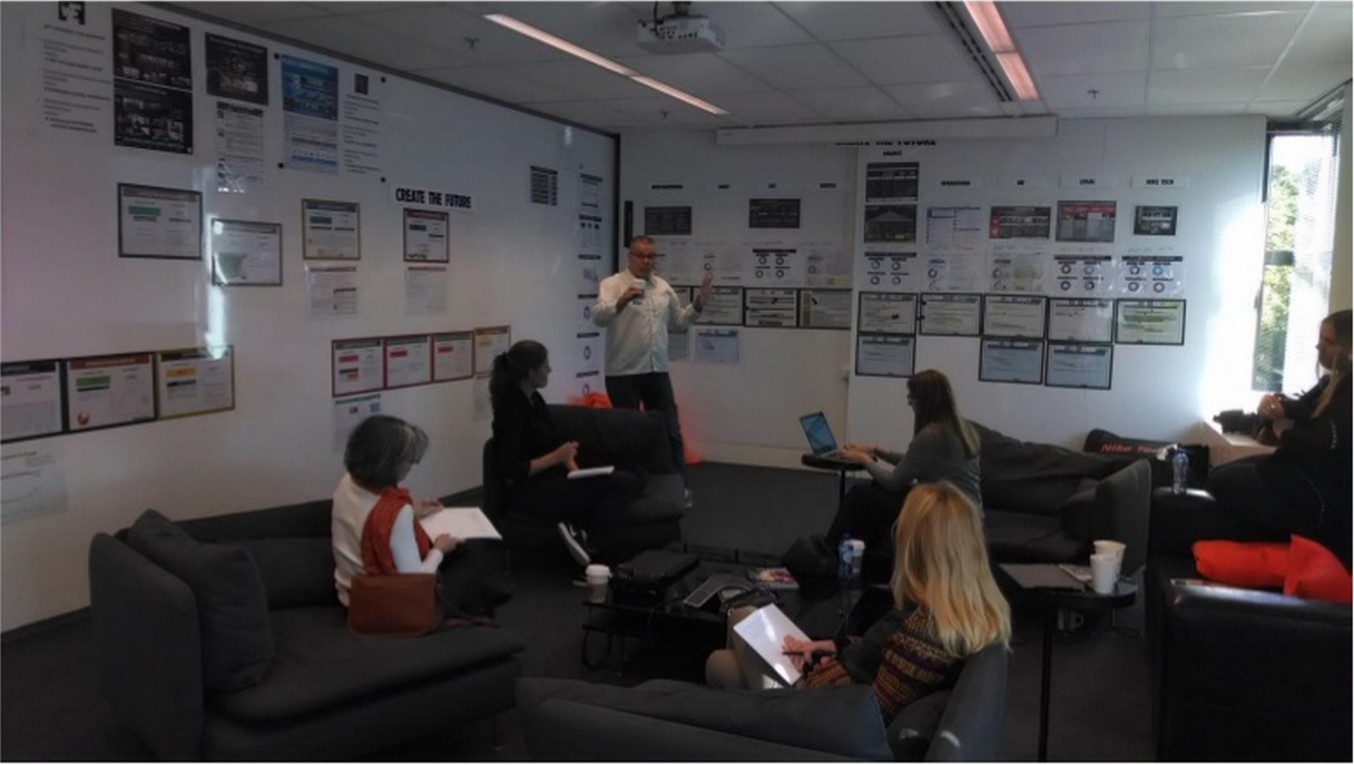 It’s a big room, but not a gigantic one. Beyond facilitating communications and decision making, working in the obeya helps team members become mutually accountable as they leverage their complementary skills in pursuit of a common goal. In other words, it helps them coalesce as a team and perform at a much higher level than they otherwise would. The limit of this approach is that this group dynamic is observed with groups of 5 to 10 members, but not with groups of 50 to 100.