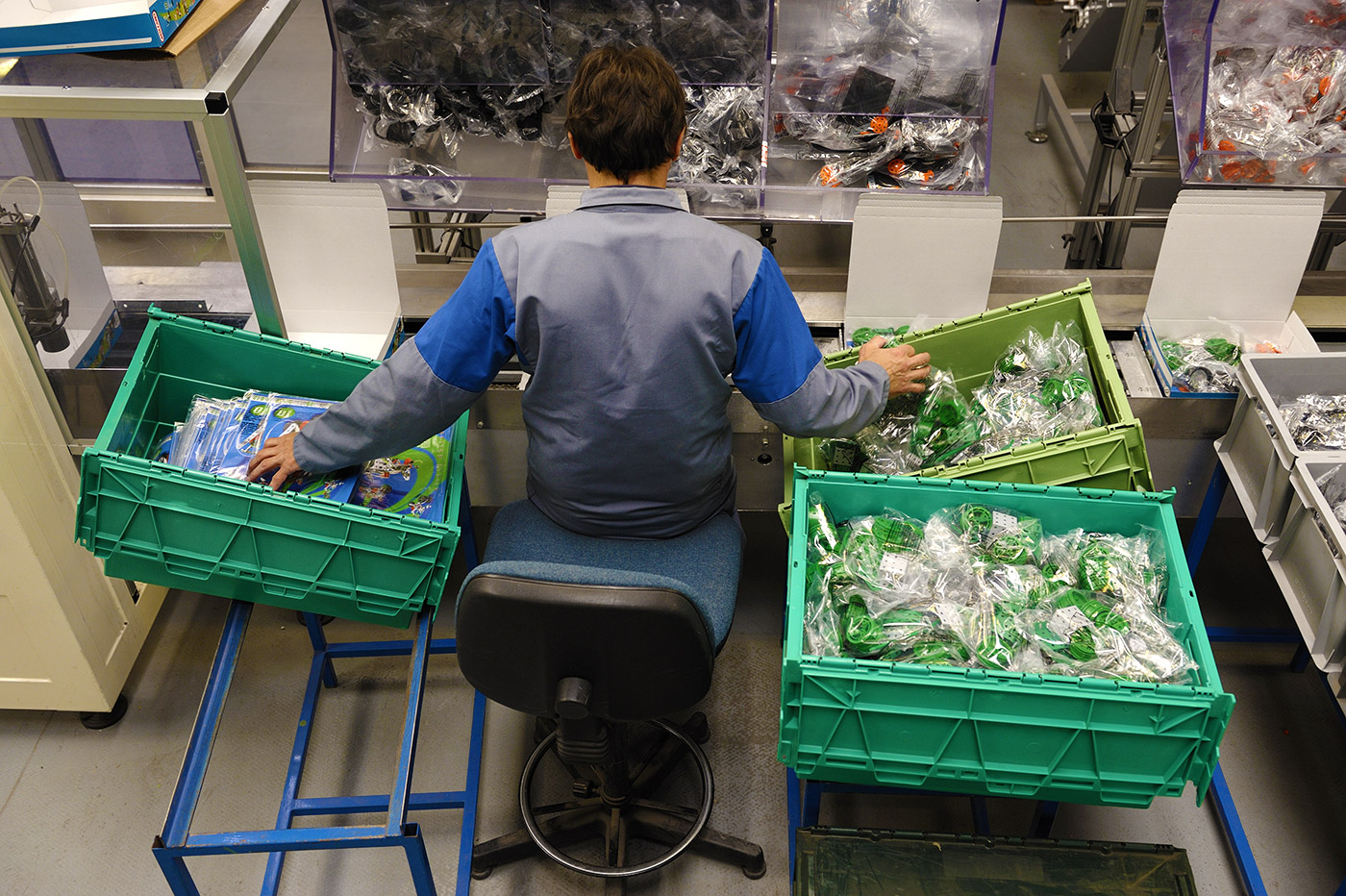 - In the repetitive motion example, the assembly station is badly designed. The parts should be fed on chutes from behind the station rather than bins in front. This would make the operator’s hand movements shorter and front to back, free the space around him, and relocate all materials handling behind the line. And this would pave the way for stepwise automation to eventually eliminate the repetitive, high-speed task.