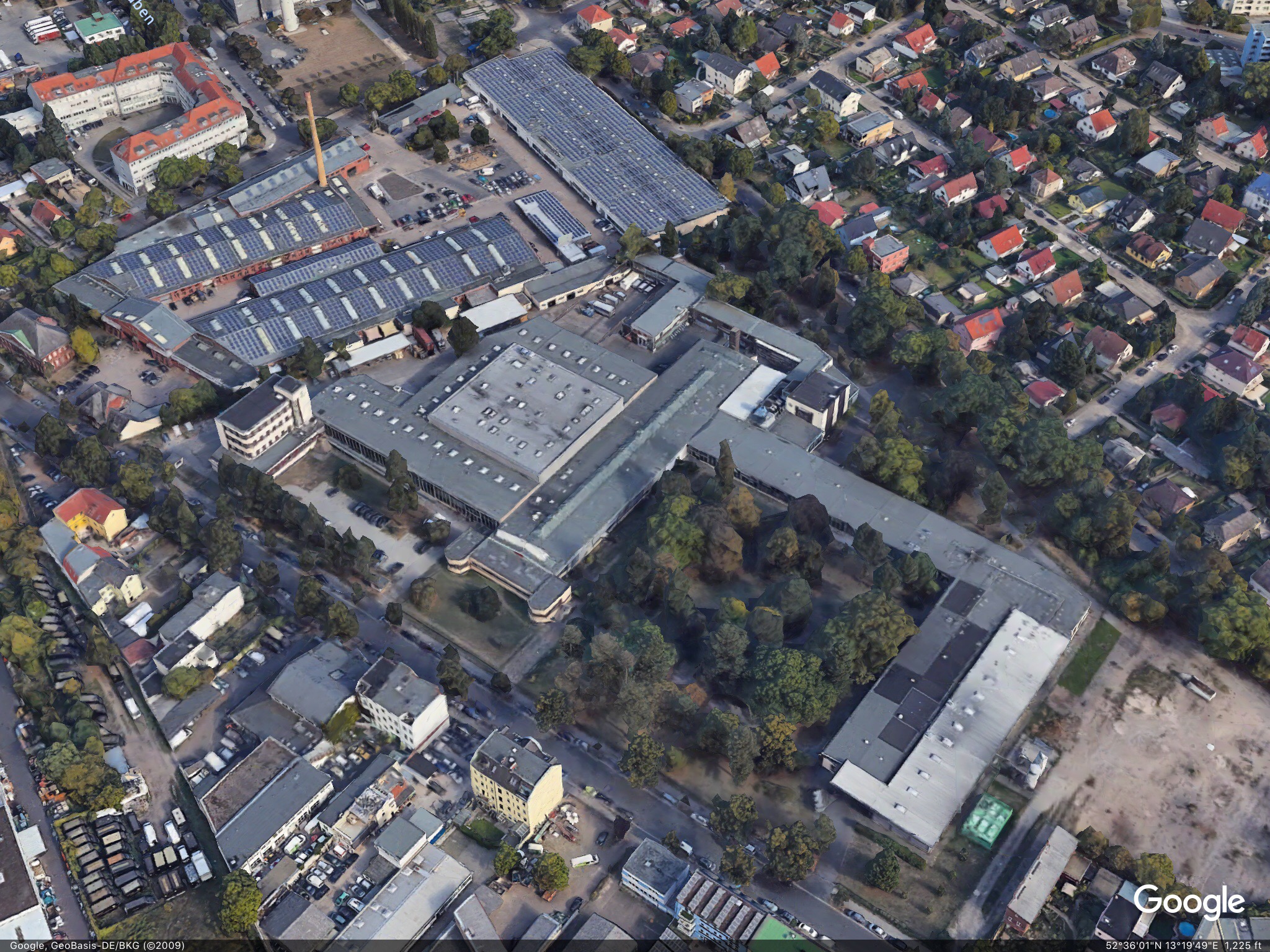 By the time of Kumabe’s visit, Punitzer, a Jew, was a refugee in Chile. The Lindner plant is now officially protected as a Berlin landmark and featured in the architecture museum at the Technical University. Kumabe’s picture is from the small structure in the center of the Google earth view of the plant below. Many of the other structures appear to be later additions.